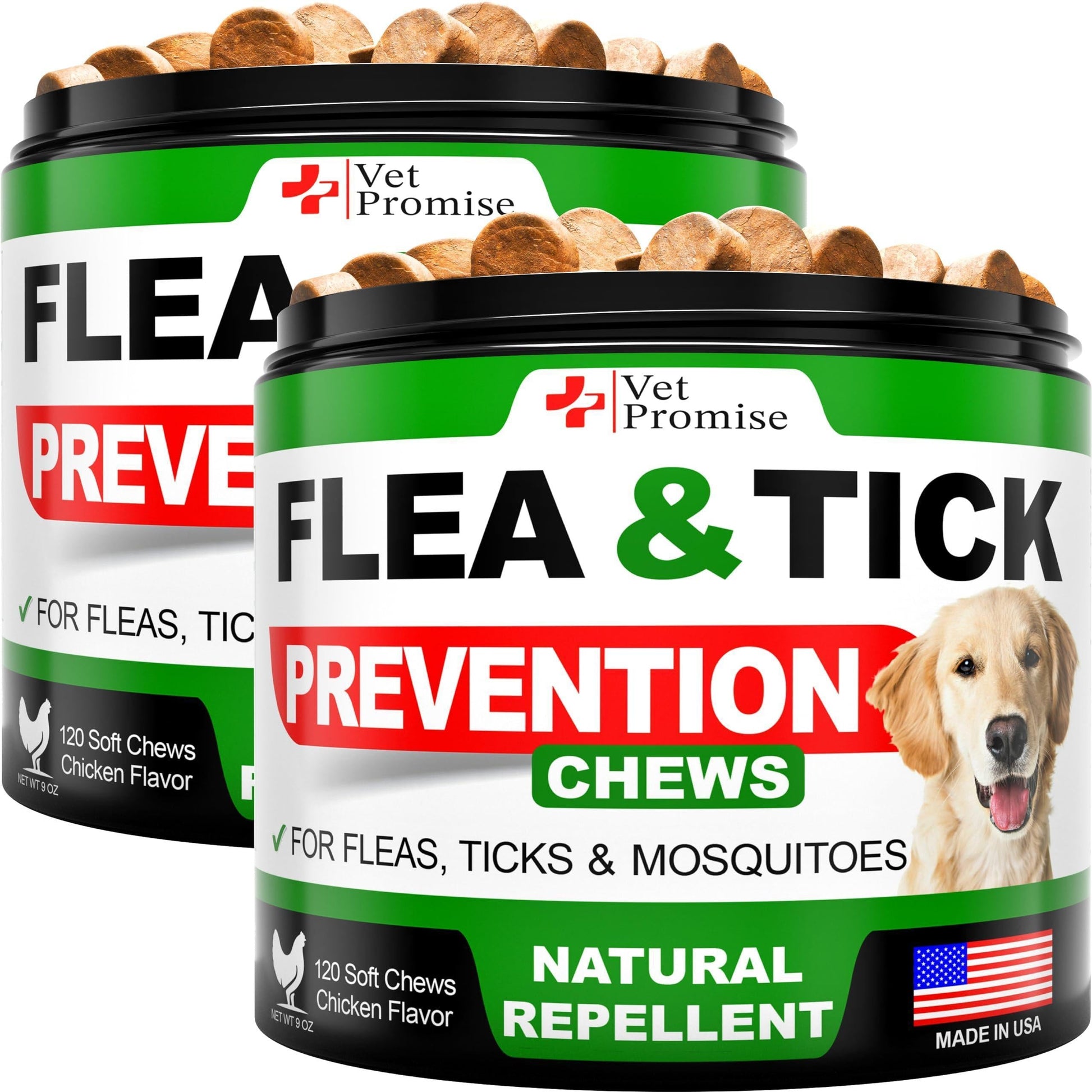 Natural Flea And Tick Prevention For DogsKeep your dog safe from fleas and ticks with our supplement. Our formula uses only natural ingredients to help prevent pesky pests from biting your dog Effective ProtectionFor the best results, give our flea and tick prevention for dogs chewable tablets to your dog every day, this helps build up the appropriate levels in their system Safe And NaturalOur tick and flea control for dogs is made in the USA using only natural ingredients. It's safe for dogs of all breeds and ages, so you can trust that your furry friend is in good hands Made in The U.S.A + VET FormulatedOur flea and tick prevention for small dogs treats are made in the USA and formulated by VETS in an FDA-registered facility that meets the highest quality standards Premium Natural Ingredients Give ResultsNo Added Sugar, Wheat, Corn, GMOs or Preservatives. We are committed to using only best ingredients that deliver results in our flea and tick chewables for dogs